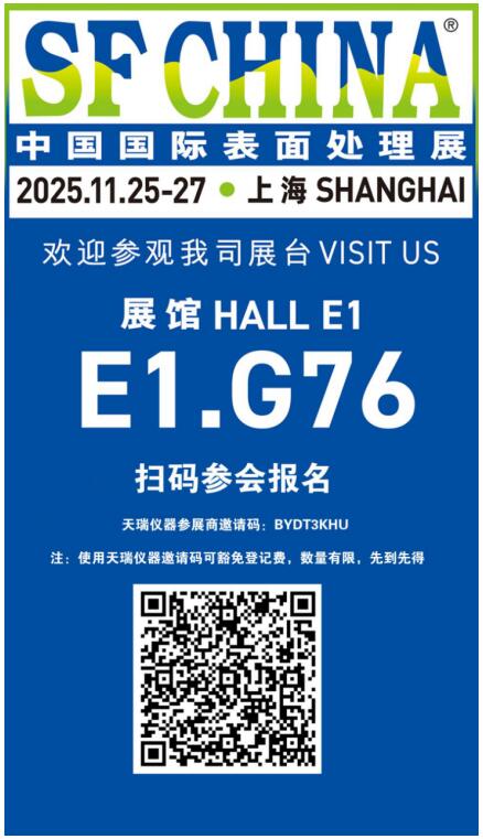 中國國際表面處理展(SFCHINA)將于2025年11月25-27日在上海新國際博覽中心(SNIEC)舉行,匯聚全球表面處理行業(yè)人士,天瑞儀器受邀參展(展位:E1.G76)。我們將展示在天瑞在電鍍行業(yè)的新技術(shù)與解決方案,期待與您面對面交流,共探合作機遇。