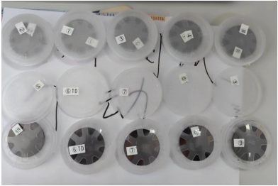 按照石墨取樣標(biāo)準(zhǔn),取100g石墨樣品,在105℃的干燥箱干燥2h。稱量10.0g石墨樣品和2.0g硬脂酸(分析純)于粉碎機(jī)中振動(dòng)研磨30s,將石墨樣品粉碎至0.074mm及以下。稱量3.0g石墨樣品和12.0g硼酸粉末,以硼酸粉末為填充劑,在30T壓力保壓30s的條件下壓片成型。然后,在樣片上面貼上標(biāo)簽、放入樣品袋中,待用。