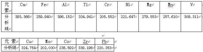 根據(jù)ICP軟件譜線庫提供所有元素不同譜線,首先選擇被測元素靈敏度高的譜線,其次考慮不受樣品基體及被測元素相互之間干擾小的譜線的原則,選擇分析線如下。