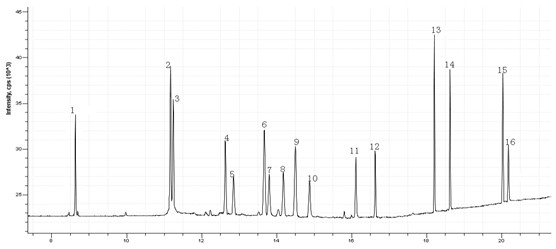 1.α–六六六;2.β–六六六;3.γ–六六六;4.七氯;5.艾氏劑;6.環(huán)氧七氯B;7.4,4’-滴滴伊;8.狄試劑;9. 2,4’-滴滴滴;10.異狄試劑;